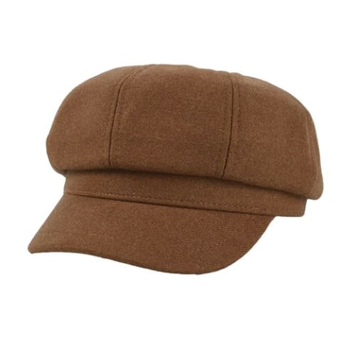 The Newsboy/Cabbie Cap style is repeatedly listed, often featuring wool blends or tweed and sometimes including decorative chain details on the brim for a modern twist on the retro look.